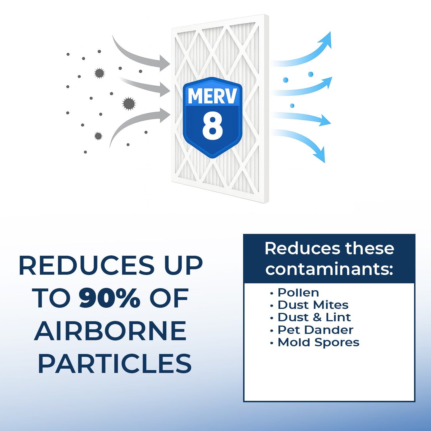 The Accumulair Gold MERV 8 air filter uses electrostatically charged, 100% synthetic media and is designed to fulfill a variety of needs. The material used in all Accumulair filters works like tiny magnets to attract fine particles - similar to how dust is attracted to a TV screen. Other filters, like fiberglass and washable/reusable, can miss these allergens. Plus, Accumulair filters have a galvanized steel support grid which helps withstand bending or collapsing caused by pressure created by air movement through the filter.