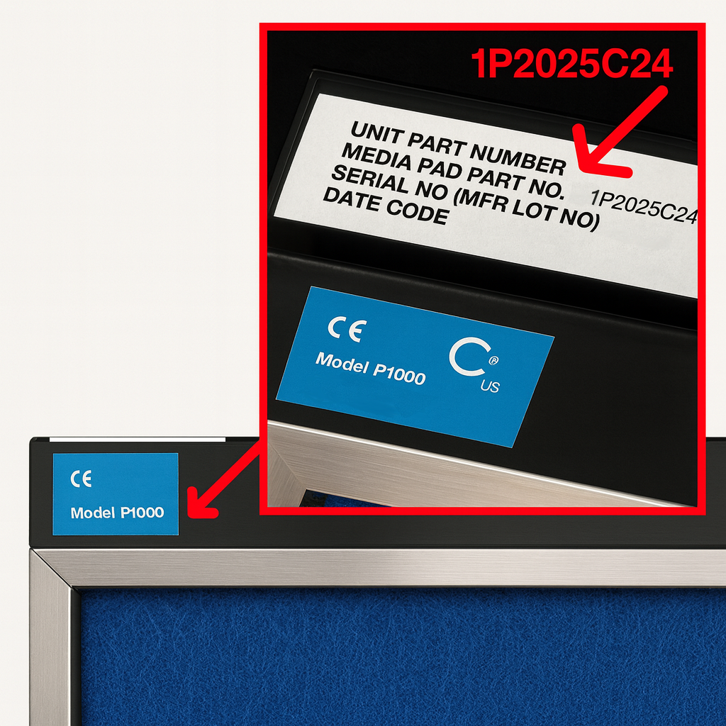 Do not measure the pad itself! Panel size is labeled on the black track of your panel. Please order your pads using this panel size. For help determining your filter size, use the images to the left or contact us at 727-449-8448.